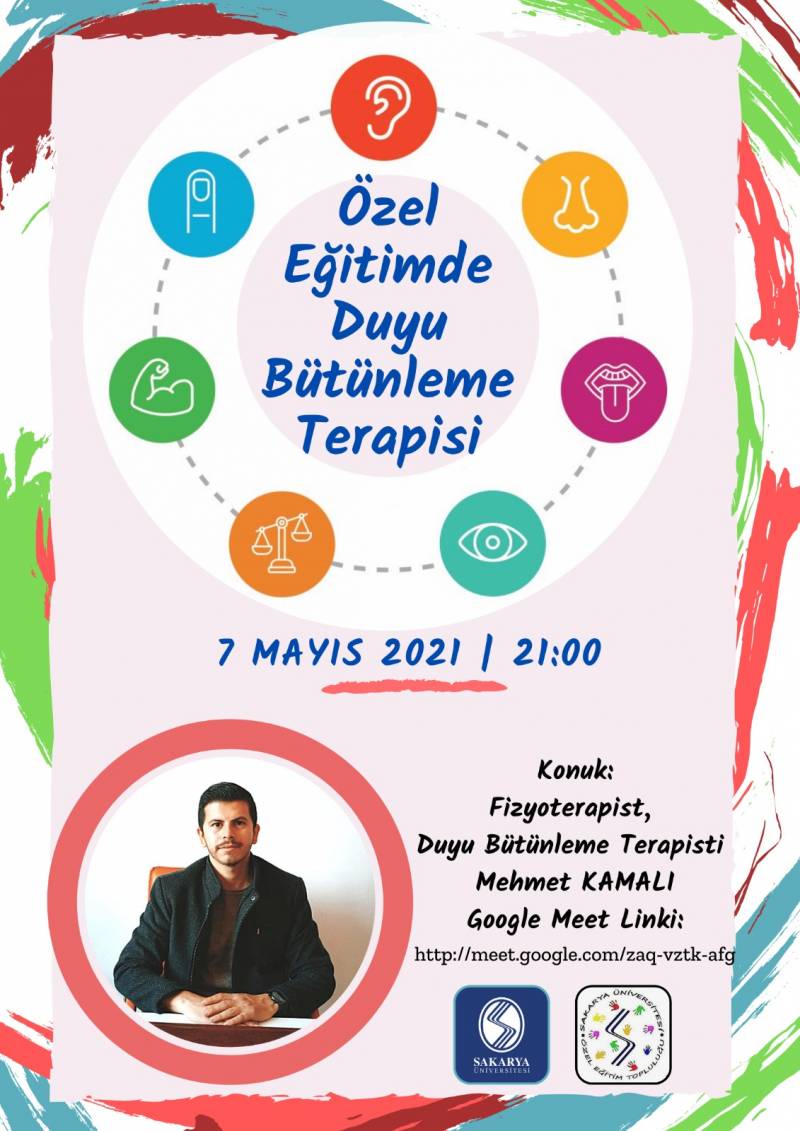 07.05.2021 tarihinde, saat 21.00'de gerçekleştirilecek "Özel Eğitimde Duyu Bütünleme Terapisi" başlıklı webinar linkine Özel Eğitim Öğrenci Topluluğu instagram hesabından ulaşabilirsiniz.
